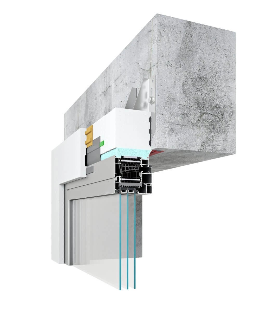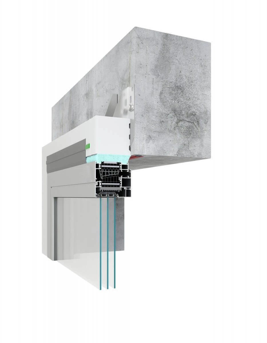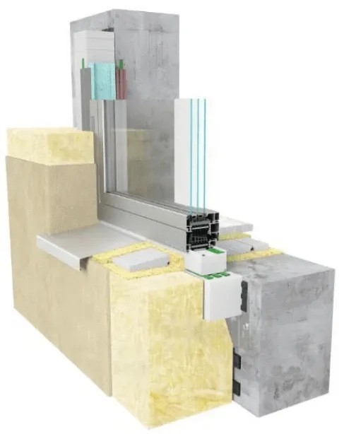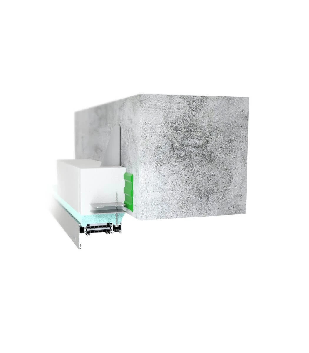 Les bâtiments passifs et économes en énergie cherchent à réduire les pertes de chaleur dues aux ponts thermiques et aux connexions qui fuient. Mais même l'installation des produits de fermeture hautement isolés (fenêtres, portes) peut s'avérer insuffisante. Pour cette raison, il est recommandé d'installer des fenêtres et des portes de balcon dans la zone d'isolation thermique, si possible, prolongées au-delà de la face du mur (déplacées vers la zone d'isolation extérieure du bâtiment), et de relier étroitement les châssis de fenêtres et de portes au mur. Le système MB-Installation Solution garantit une installation simple, rapide et précise. Cette solution est basée sur des composants segmentés en polystyrène dur EPS à très faible conductivité thermique λ = 0,032 W/(m2K). Il s'agit d'élargir l'ouverture de la porte en faisant de ces éléments un châssis de support étanche – c'est comme si l'on mettait les blocs ensemble. Le châssis est constitué de poutres de montage chaudes de 100 ou 200 mm de largeur, équipées de deux types d'ancres systémiques (extérieur ou intérieur). Ces poutres, ainsi que leurs éléments de montage supplémentaires : poutre inférieure, bases de seuil intérieures et extérieures et autres éléments de jonction tels que les colles, mousses PU, éléments de jonction et rubans d'étanchéité, assurent une installation étanche et facile des fenêtres et portes fabriquées à l'aide les systèmes VM.