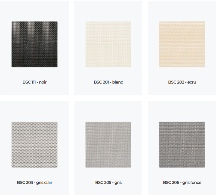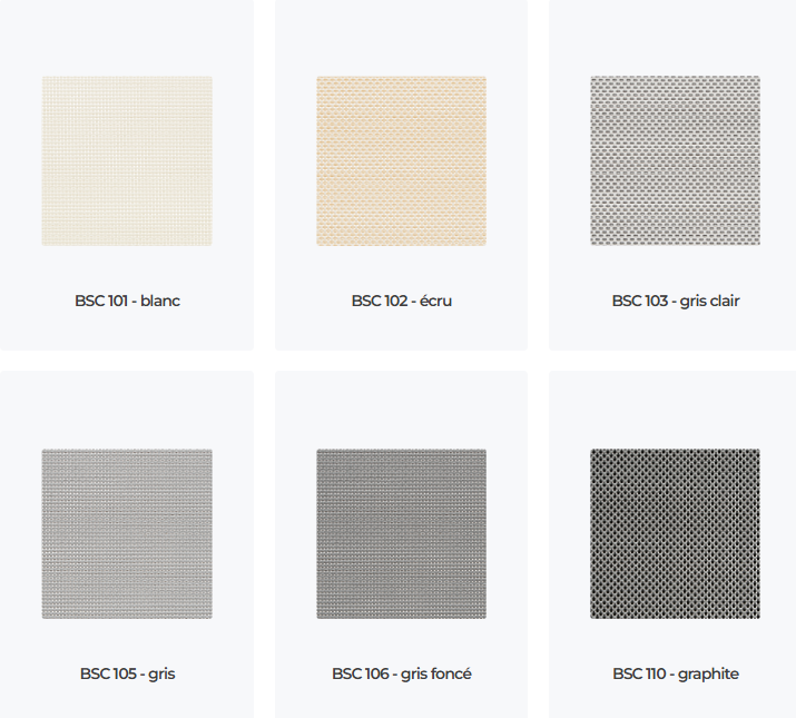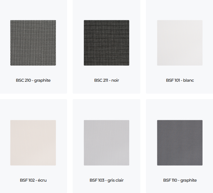 Les stores screens sont proposés dans l’un des 21 tissus de notre offre et avec des composants de la teinte RAL de votre choix.